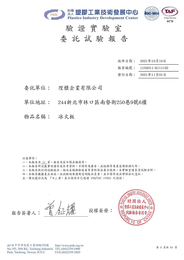 Нашата огнеупорна платка успешно премина теста CNS 14705-1 в Тайван.